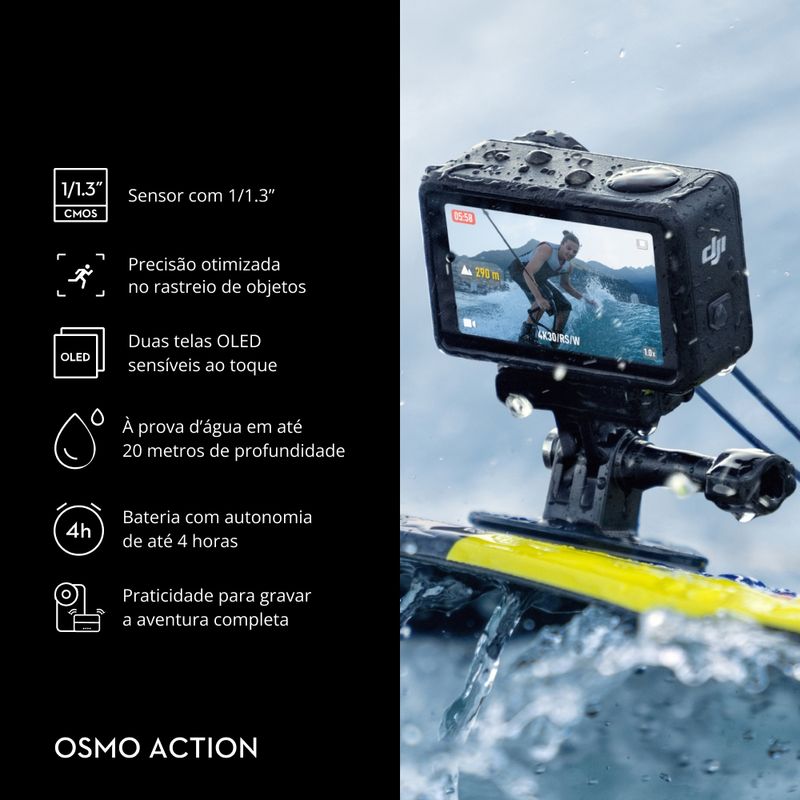 **Os dados na comparação de produtos da Série Osmo Action foram coletados em um ambiente controlado. A experiência real pode variar. Para obter mais detalhes, consulte a página do produto no site oficial da DJI.
