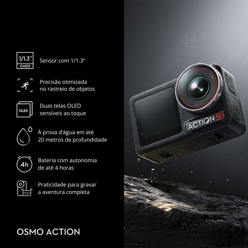 **Os dados na comparação de produtos da Série Osmo Action foram coletados em um ambiente controlado. A experiência real pode variar. Para obter mais detalhes, consulte a página do produto no site oficial da DJI.