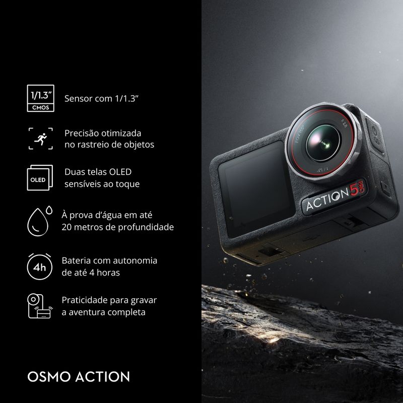 **Os dados na comparação de produtos da Série Osmo Action foram coletados em um ambiente controlado. A experiência real pode variar. Para obter mais detalhes, consulte a página do produto no site oficial da DJI.
