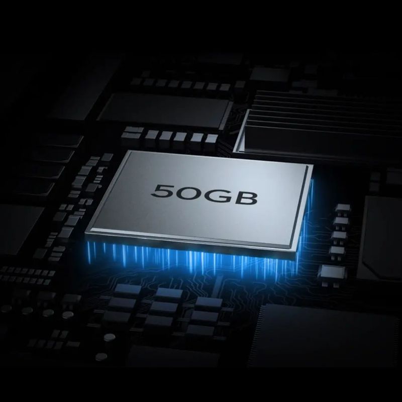 50 GB de armazenamento interno permite que você continue filmando sem preocupações, mesmo quando não tem um cartão de memória à mão.