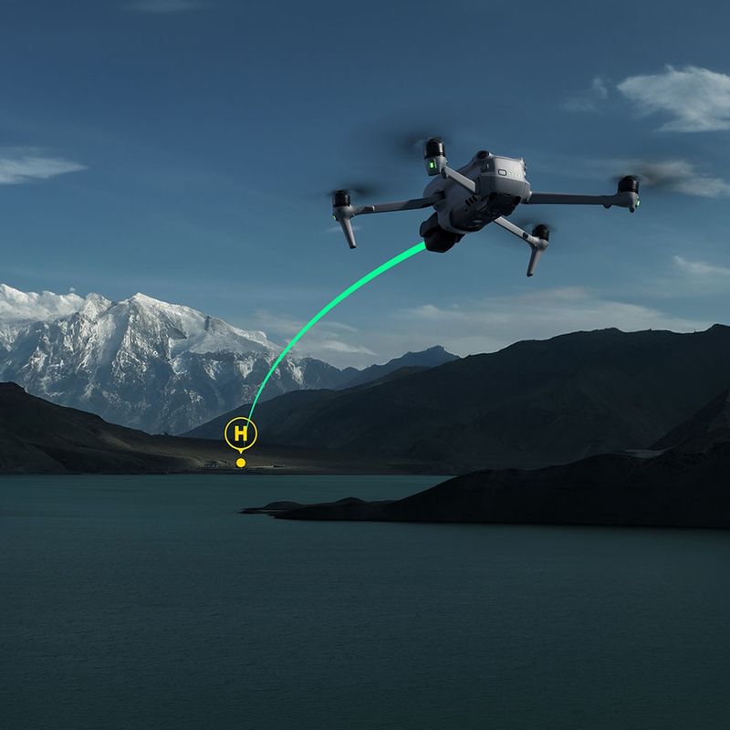 Impulsionado por tecnologias de posicionamento visual e de construção de mapas em tempo real, o DJI Air 3S memoriza rotas de voo quando há disponível iluminação suficiente. Isso garante um retorno seguro mesmo ao decolar de locais sem sinal de satélite, como varandas.