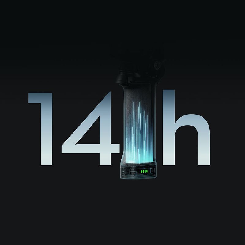 Carregue totalmente o DJI RS 5 em apenas uma hora—um aumento de 60% na velocidade. A bateria padrão oferece aproximadamente 14 horas de tempo de standby, uma melhoria de 15%.