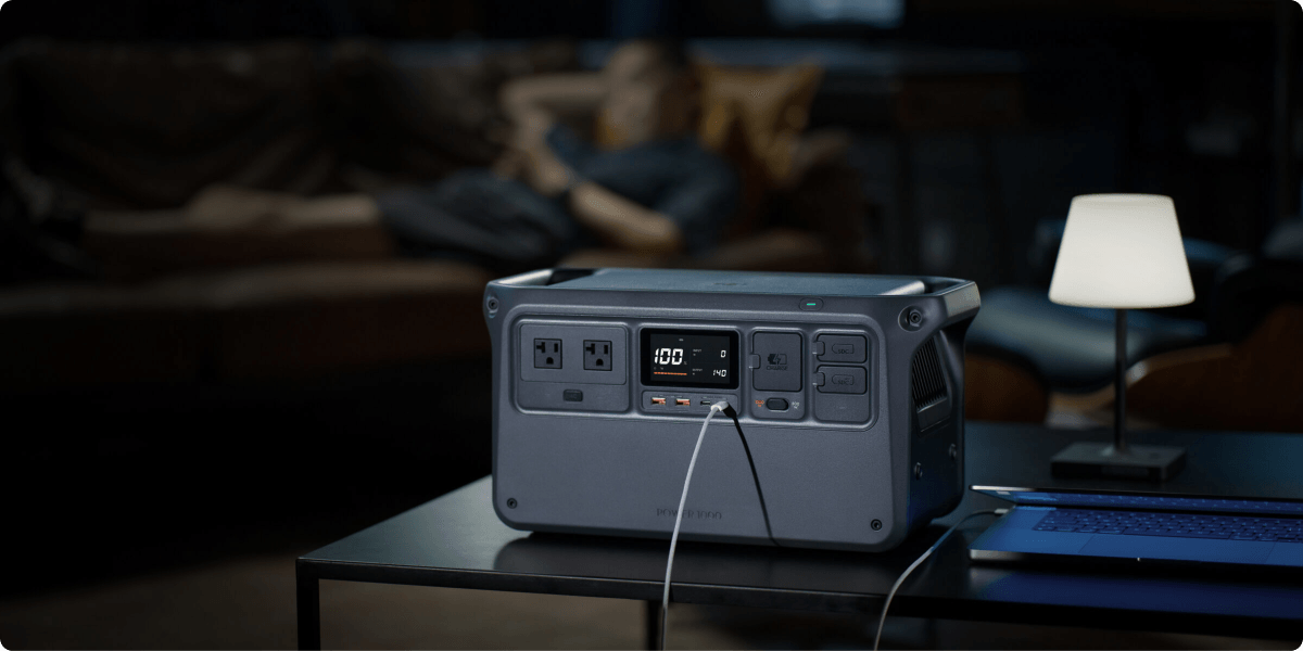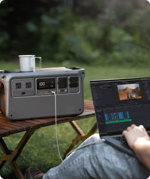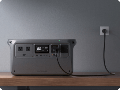 É rápido e fácil de conectar, recarregar e seguir em frente. Quando conectada à rede elétrica, a DJI Power 1000 suporta tanto o modo de carregamento rápido de 1.200 W[11] quanto o modo de carregamento padrão de 600 W, com o tempo de recarga mais rápido sendo de 70 minutos para 100% da bateria. Ela também pode carregar até 80% em apenas 50 minutos.[6]