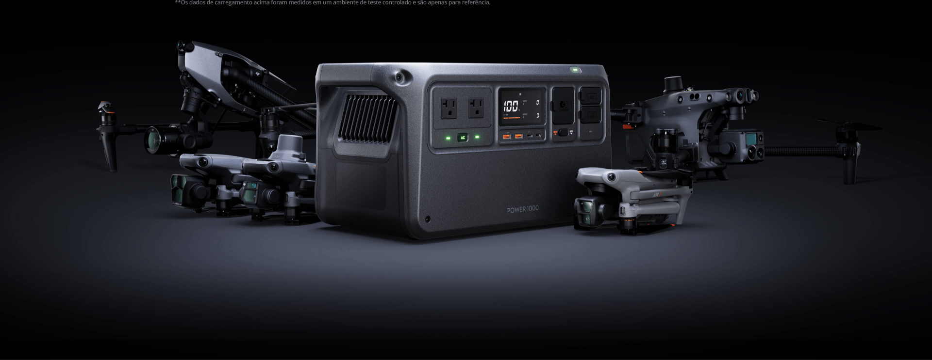 *Medidas obtidas em condições laboratoriais a 25 °C , usando a DJI Power 1000 para carregar produtos de marcas específicas. Os dados são apenas para referência. A experiência real de uso pode variar.